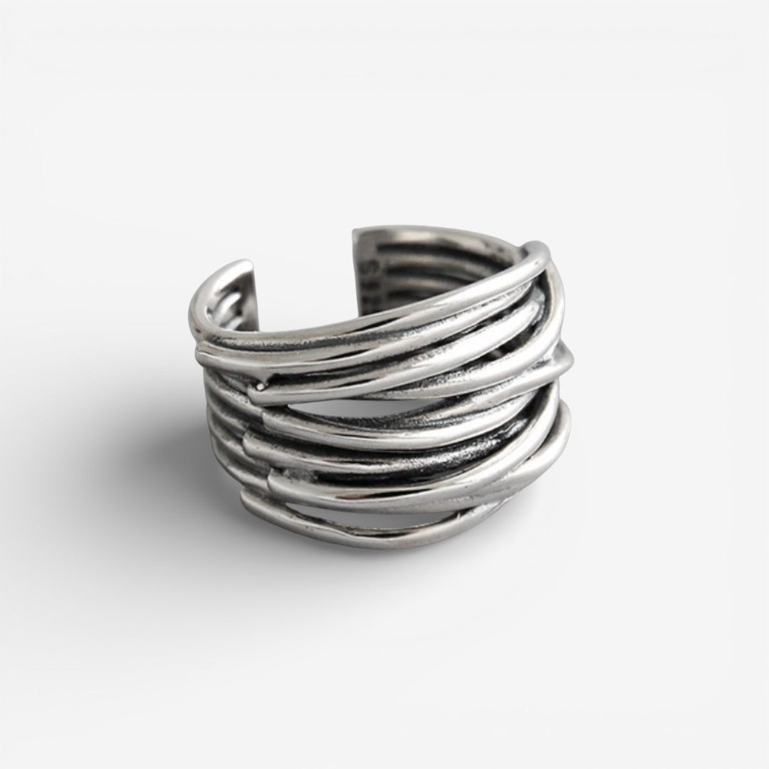 Bague ajustable en argent sterling 925 en couches