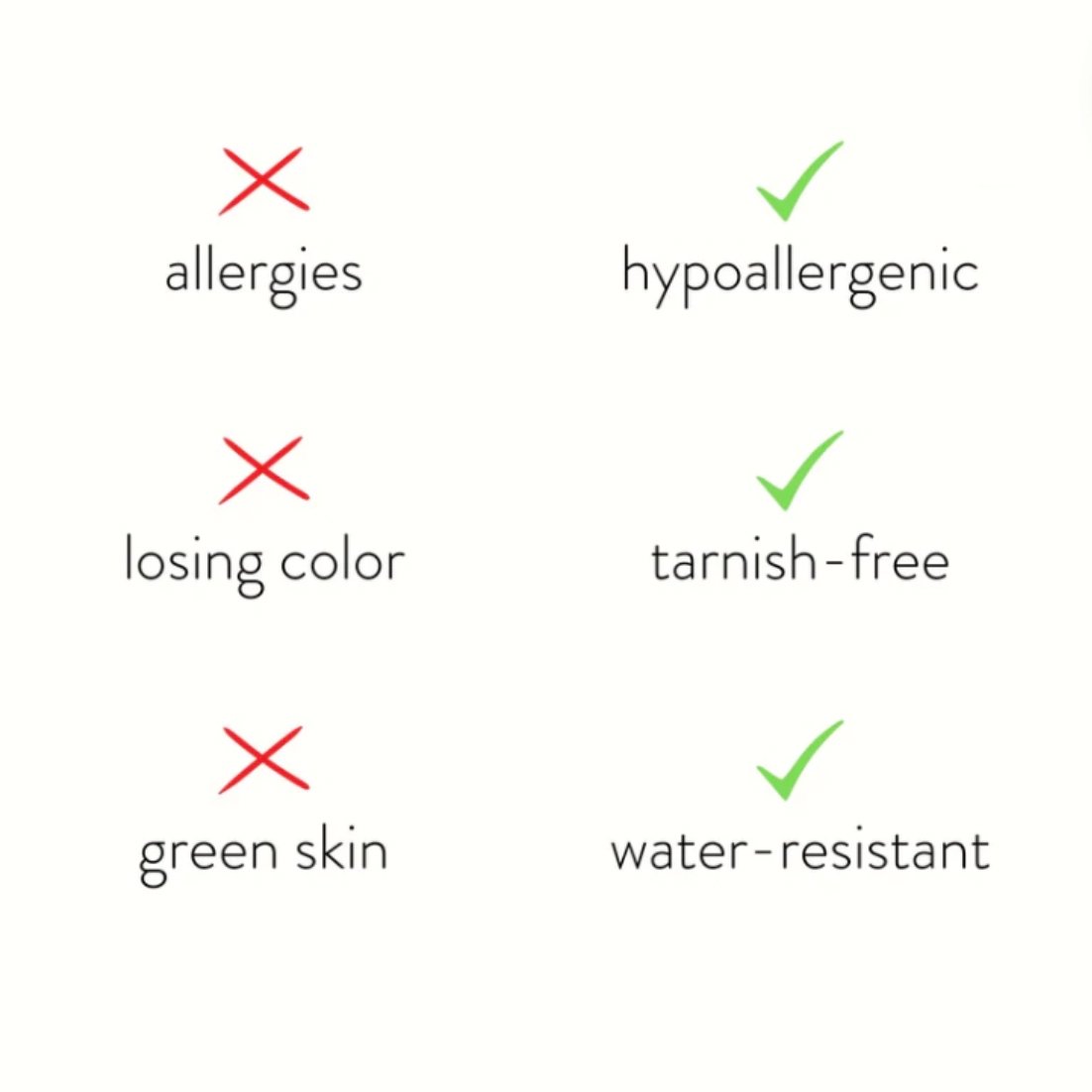 Fabriquées en acier inoxydable étanche, vous n'aurez plus jamais à vous soucier des doigts verts, des décolorations ou du ternissement.
